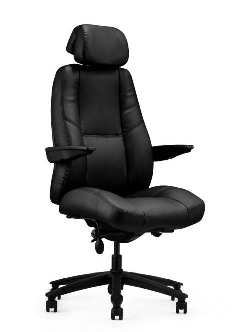 - Zagłówek, oparcie i siedzisko tapicerowane eko-skórą w kolorze czarnym.