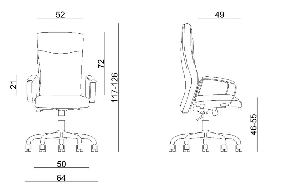 W standardzie fotel posiada samohamowne kółka do powierzchni dywanowych, na życzenie istnieje możliwość montażu kółek do twardych powierzchni (parkiet, gres).