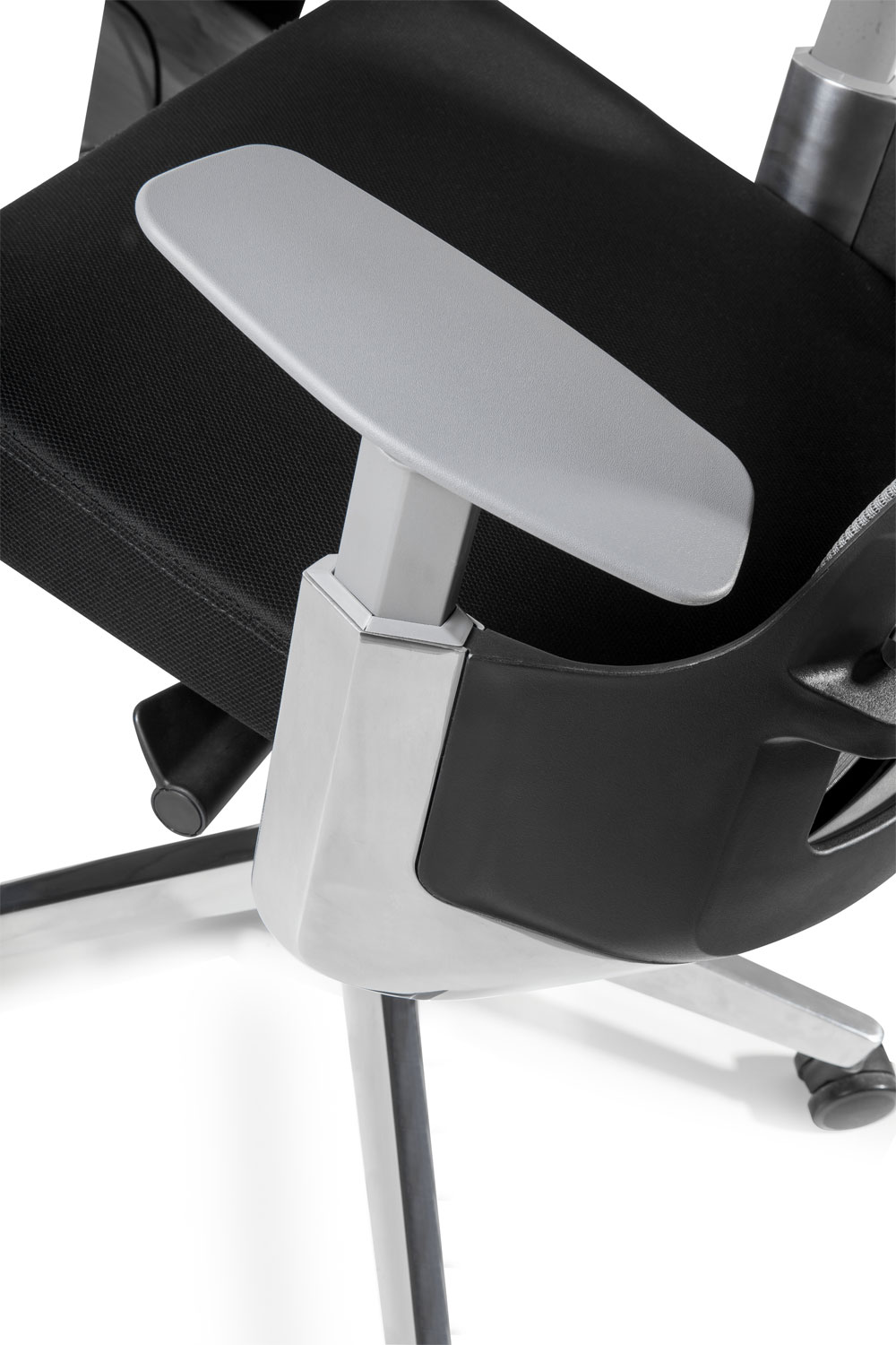 Podłokietniki wykonane z tworzywa polipropylenowego, posiadają miękkie nakładki z poliuretanu w szarym kolorze. Regulacja wysokości w zakresie 100 mm.