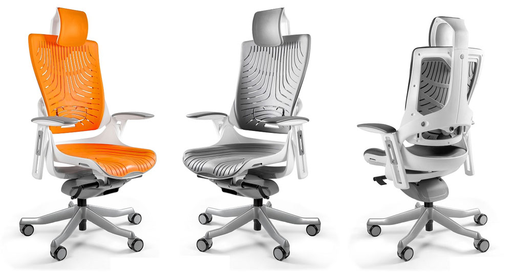 Zagłówek, oparcie i siedzisko wykonane z elastomeru (miękkie tworzywo o dużej sprężystości o właściwościach kauczuku).