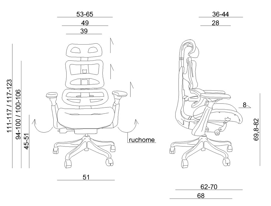 Regulowane podłokietniki góra-dół, przód-tył, wychylenie na boki.
