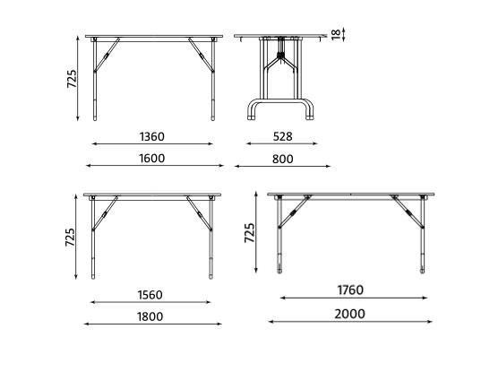 - Stół składany dostępny w trzech wymiarach - 160x80, 180x80 i 200x80 cm.