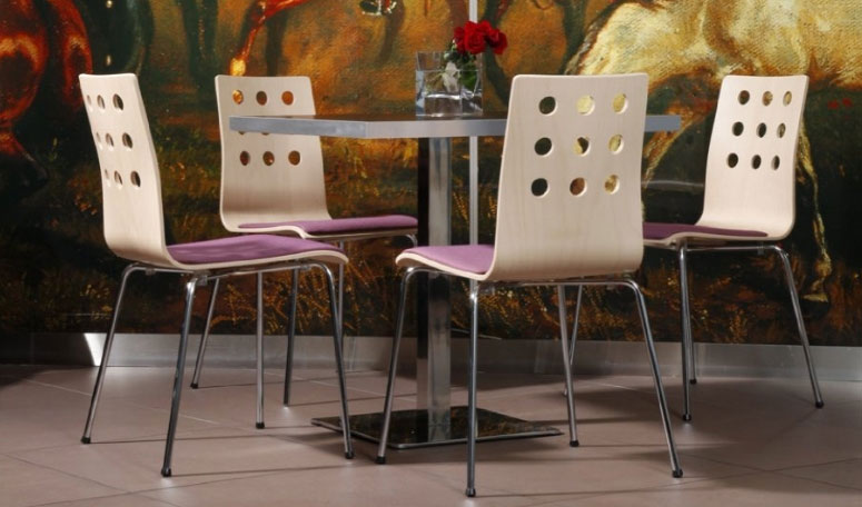 - Lara to linia stołów na charakterystycznej krzyżowanej nodze z okrągłym lub kwadratowym blatem.
