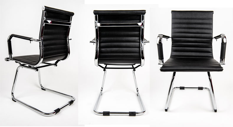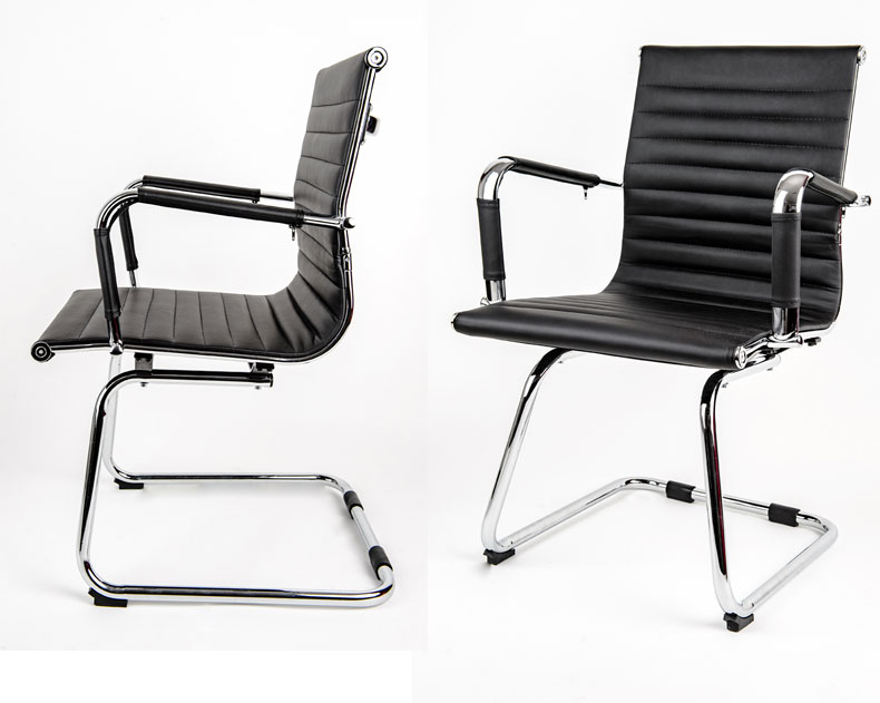 - Wygodne i designerskie krzesło konferencyjne tapicerowane w czarnej ekoskórze.