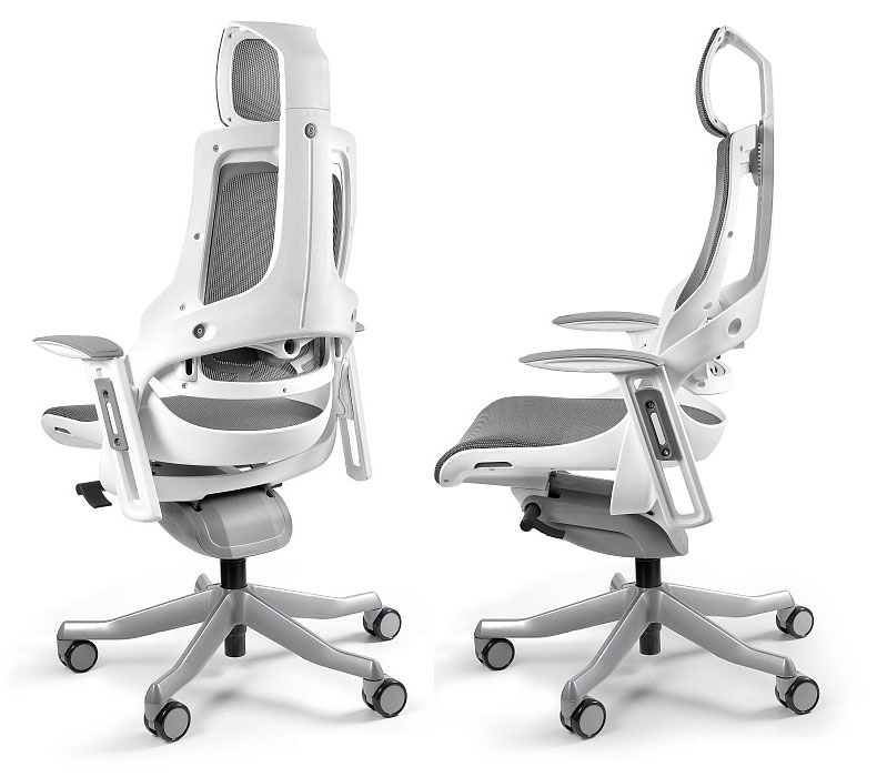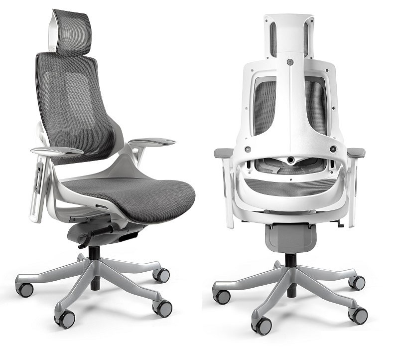 Zagłówek, oparcie i siedzisko wykonane z wysokiej jakości siatki materiałowej przepuszczającej powietrze w bogatej kolorystyce.