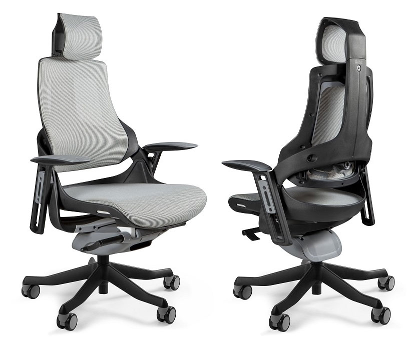Zagłówek, oparcie i siedzisko wykonane z wysokiej jakości siatki materiałowej przepuszczającej powietrze w bogatej kolorystyce.