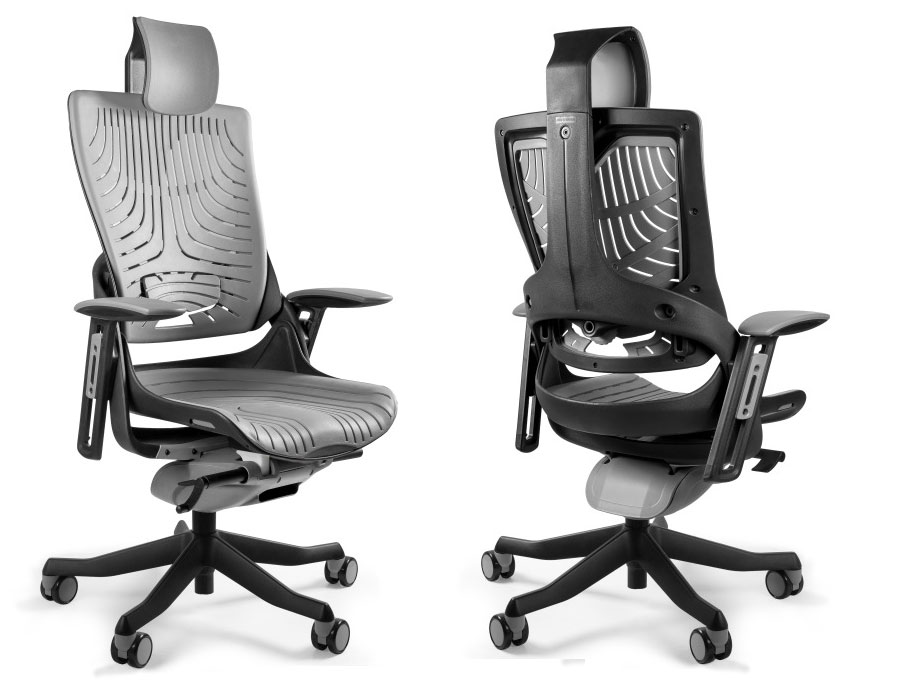 Zagłówek, oparcie i siedzisko wykonane z elastomeru (miękkie tworzywo o dużej sprężystości o właściwościach kauczuku).