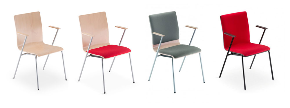 - Siedzisko i oparcie wykonane ze sklejki bukowej lub laminatu w bogatej kolorystyce.